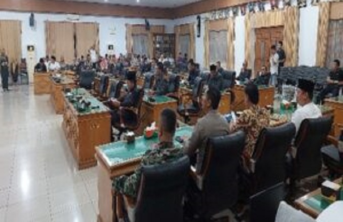 Rapat yang dipimpin oleh ketua DPRD BU, Sonti Bakara, SH, didampingi Waka II, Juhaili, S.Ip, dan Waka II, Herliyanto, S.Ip, di ikuti anggota dewan, sekwan, yang dihadiri Bupati Ir.H. Mian, OPD, FKPD maupun Undangan lainnya. (31/3/2023).
